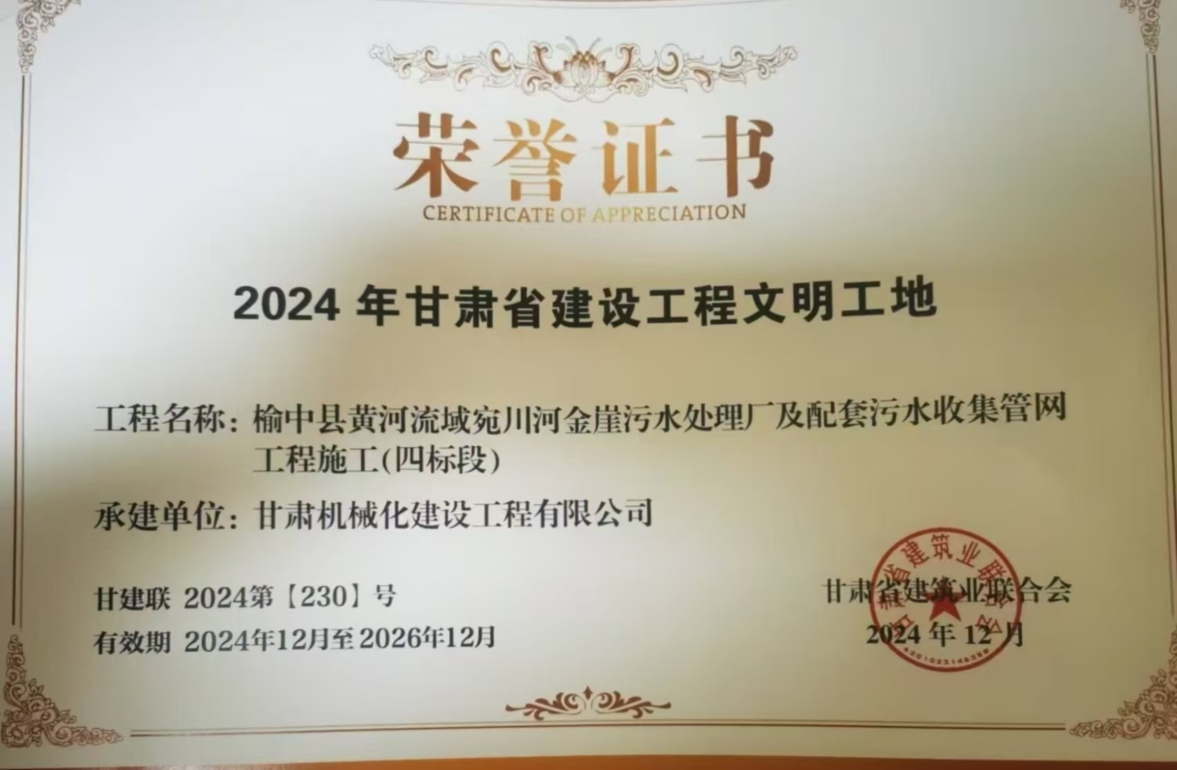 榆中縣黃河流域宛川河金崖污水處理廠(chǎng)及配套污水收集管網(wǎng)工程施工-2024 年甘肅省建設工程文明工地